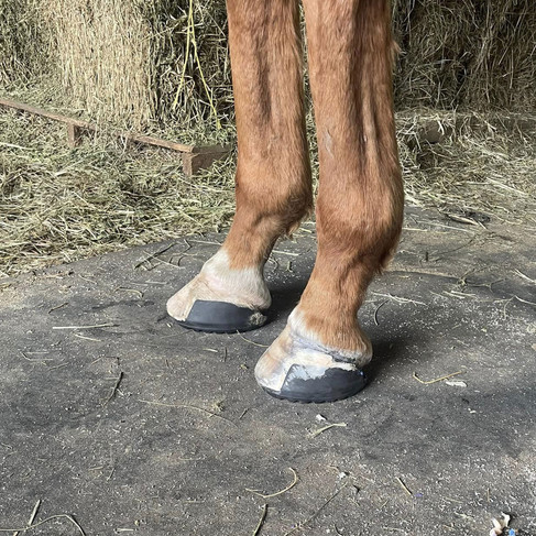 We’re giving those hooves a chance to grow and keep him sound and comfortable in Glushu glue on horse shoes while getting back to work”