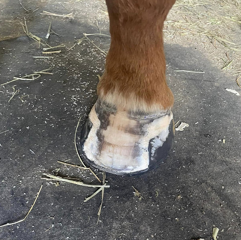 Meet Nerve, my nervous OTTB friend. This thin soled tender footed boy was missing his shoes, most of his hoof wall gone, and nail fragments lodged into his foot.