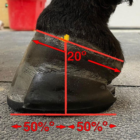 In seven weeks, the horse can present a more balanced posture, he ran bare foot for a week before this set and maintained his hind alignment with no plantar support. He had been unable to fully load his hind heel purchase, for years.